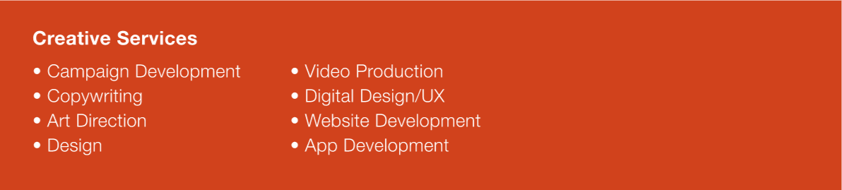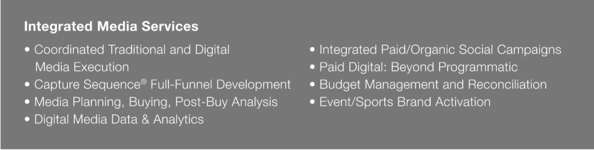 We’ve spent nearly four decades honing a collaborative process that compels the harmonic integration of all marketing disciplines. For example, we don’t organize our people by department. We organize by client team. So instead of woodwinds hanging with woodwinds, your clarinet players are shoulder-to-shoulder with the cellists and the percussionists. Harmonized, integrated campaigns are built organically, not cobbled together at the end of the process.